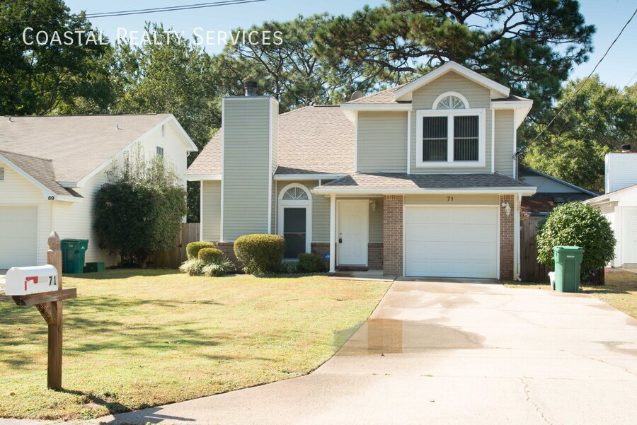 Welcome to this lovely 2-bedroom, 1.5-bath home conveniently located near both Eglin AFB and Hurlburt Field. This well-maintained property features a spacious living room with laminate wood flooring and a cozy fireplace, perfect for relaxing evenings. The eat-in kitchen comes equipped with sleek stainless steel appliances, offering both functionality and style. Upstairs, you'll find two comfortable bedrooms for restful nights. Enjoy the Florida lifestyle year-round in the sunroom—partially covered, partially open—ideal for morning coffee or evening unwinding. The nicely landscaped yard is enclosed with a privacy fence and includes a lawn pump and sprinkler system. Plus, lawn care is included for your convenience. Sorry no pets allowed and no smoking inside.